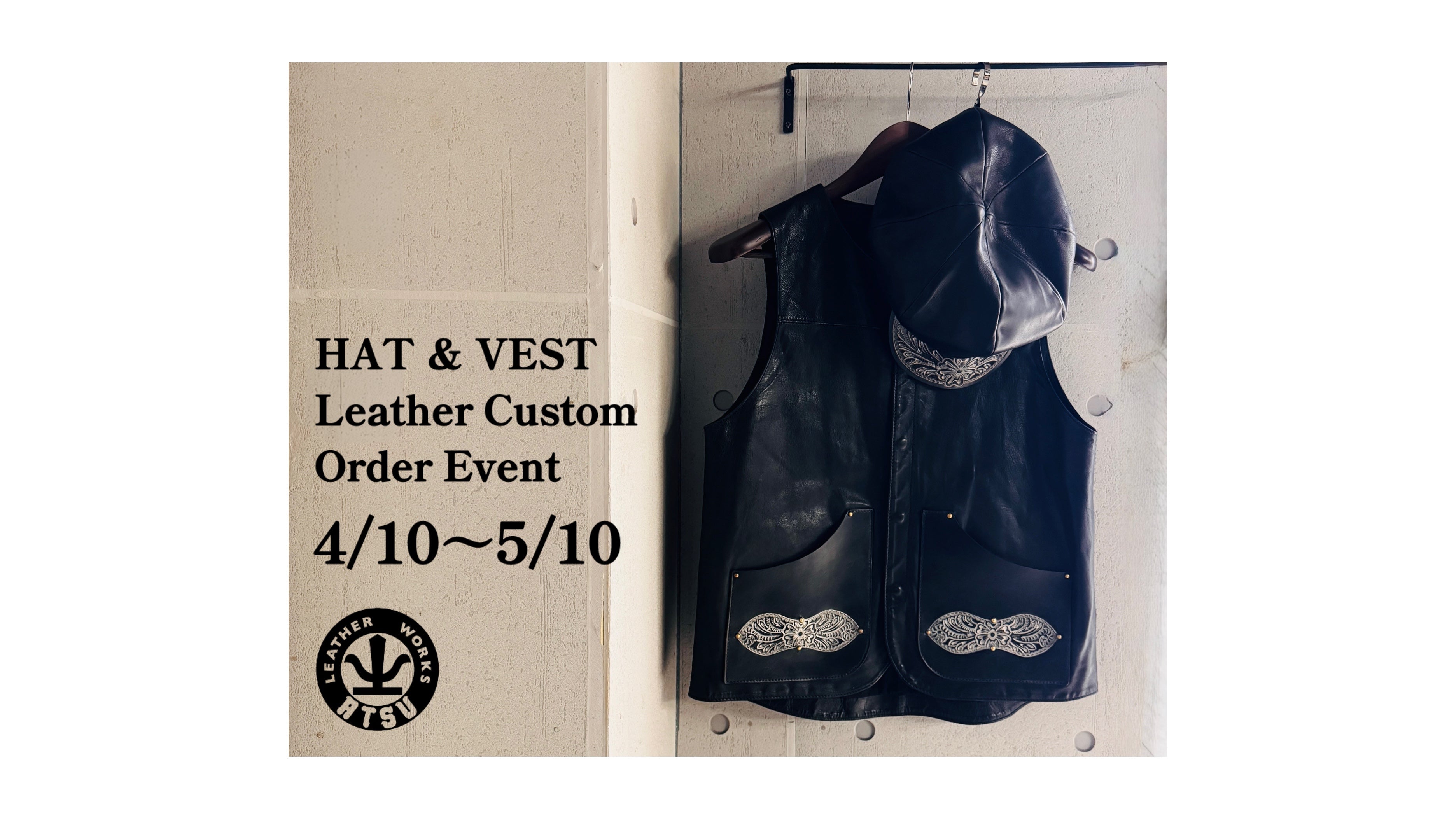 純銀の「The Ore ジ・オーア」を施した、ATSU LEATHER WORKSを代表するハット&ベストのレザーカスタムオーダー会を開催いたします。