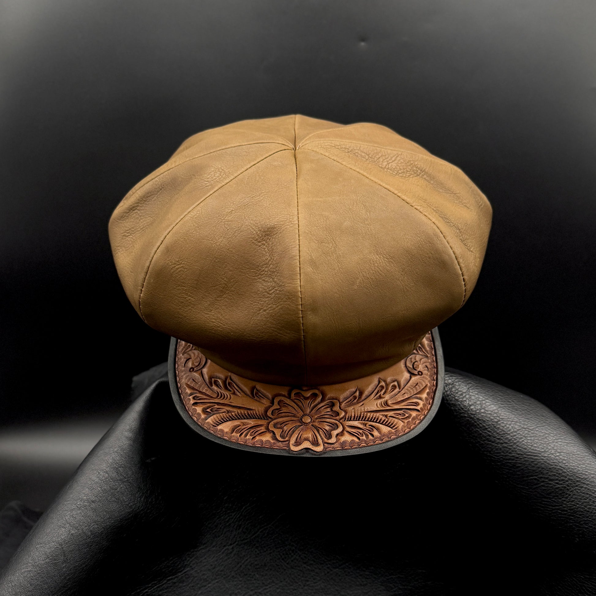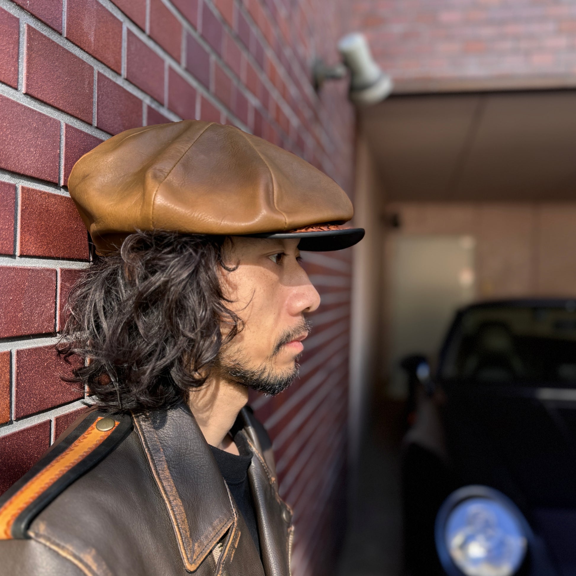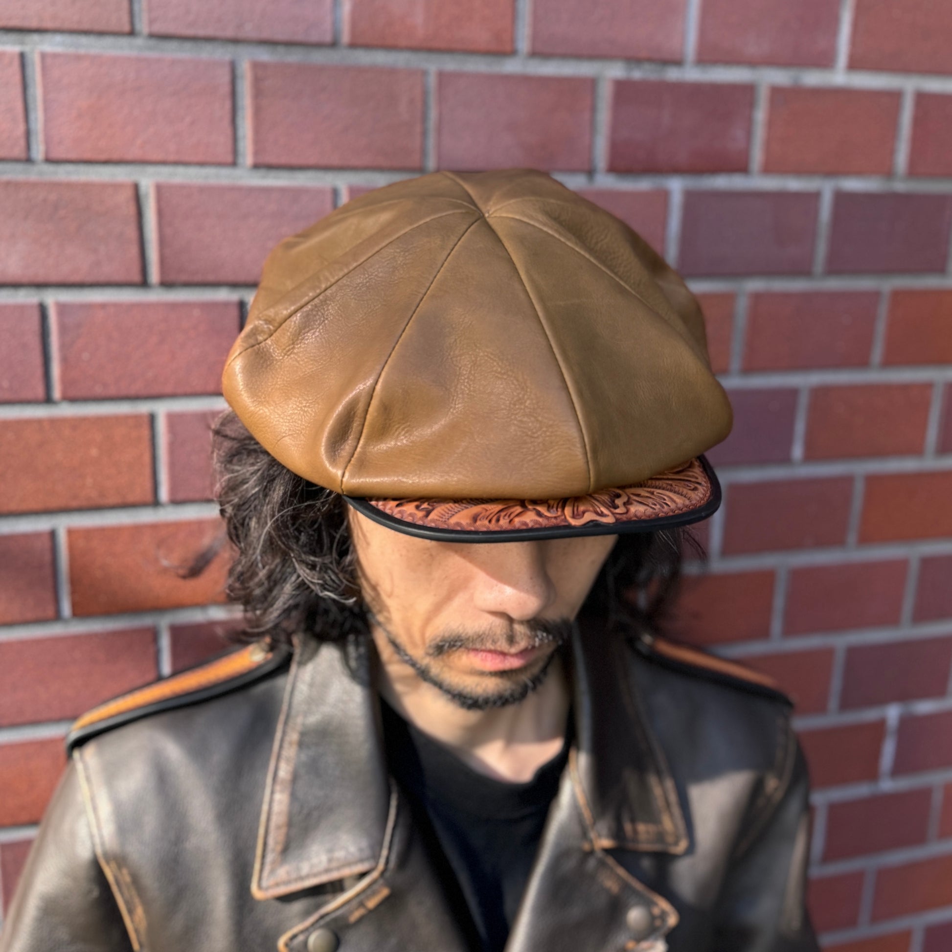 【新色】Casquette "Peanut Flower"【レザーキャスケット/カーキ/カーフレザー/カービング】