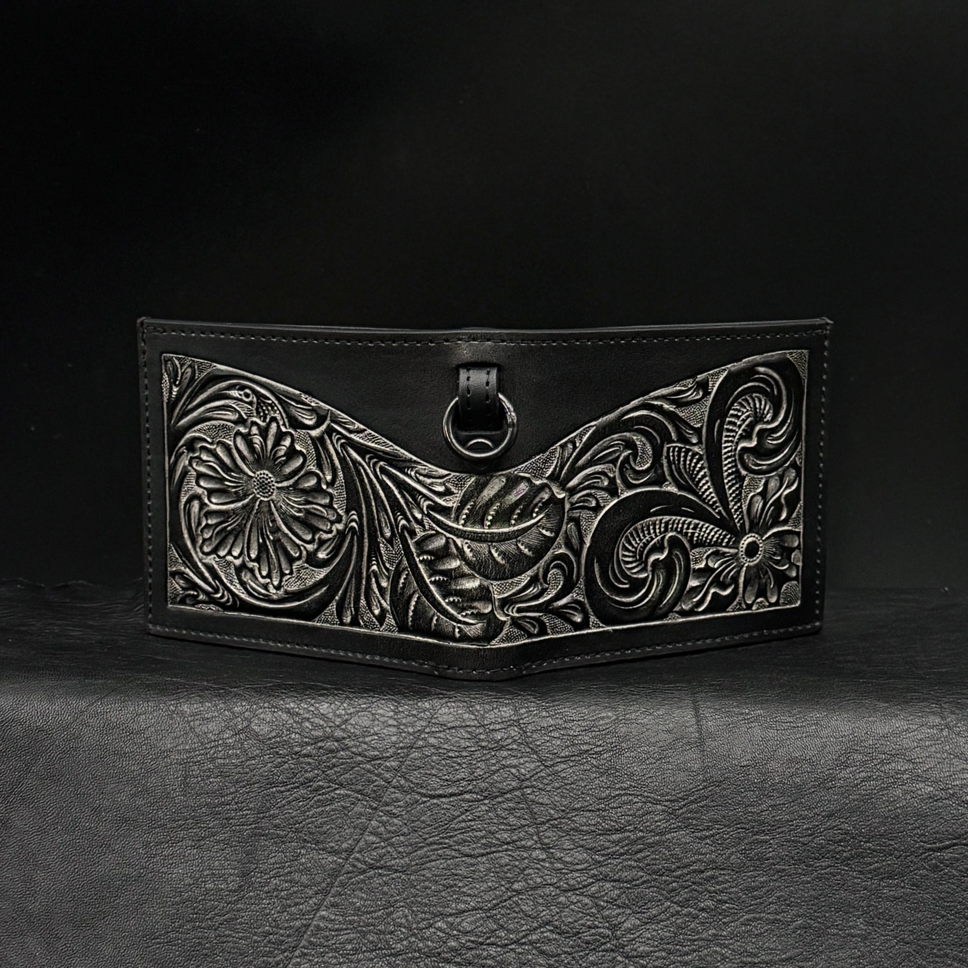 ATSU LEATHER WORKSの独自技法、The Ore 革へ彫刻(レザーカービング)を施し、そこへ鉱石、宝石を砕いて調色、定着させた物です。 彫刻と自然由来の鉱石による調色の融合は誰とも被らない"オンリーワン"を体現。 純銀による唯一無二の経年変化をお楽しみいただけます。