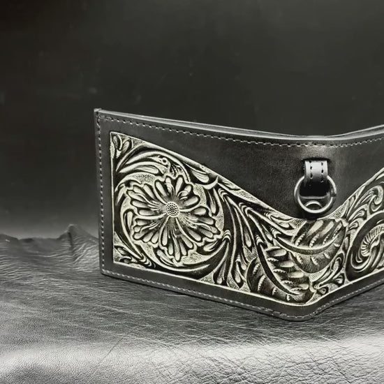 特別にオーダーしたカービング専用のタンニンなめしレザーを使用し彫刻。