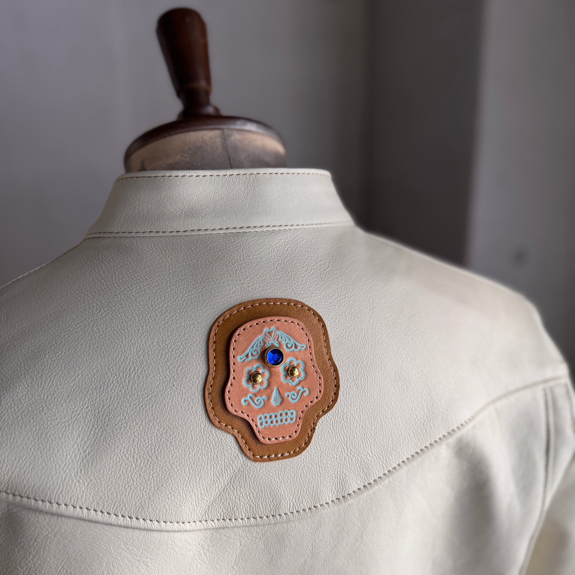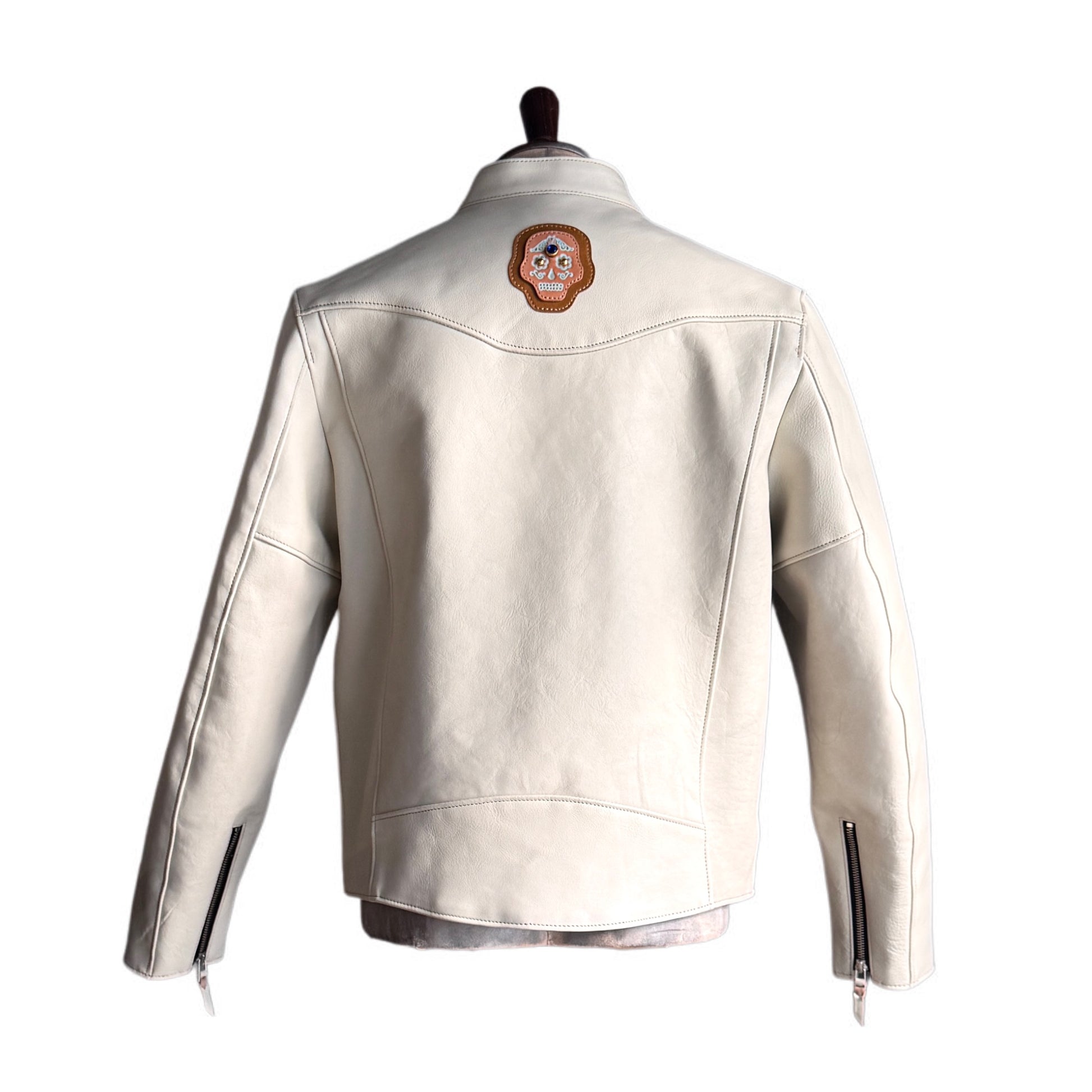 メキシコの伝統的な文化にATSU LEATHER WORKSのエッセンスを加え、ブランドを象徴するモチーフを背中に配した唯一無二のシングルライダースジャケット。
