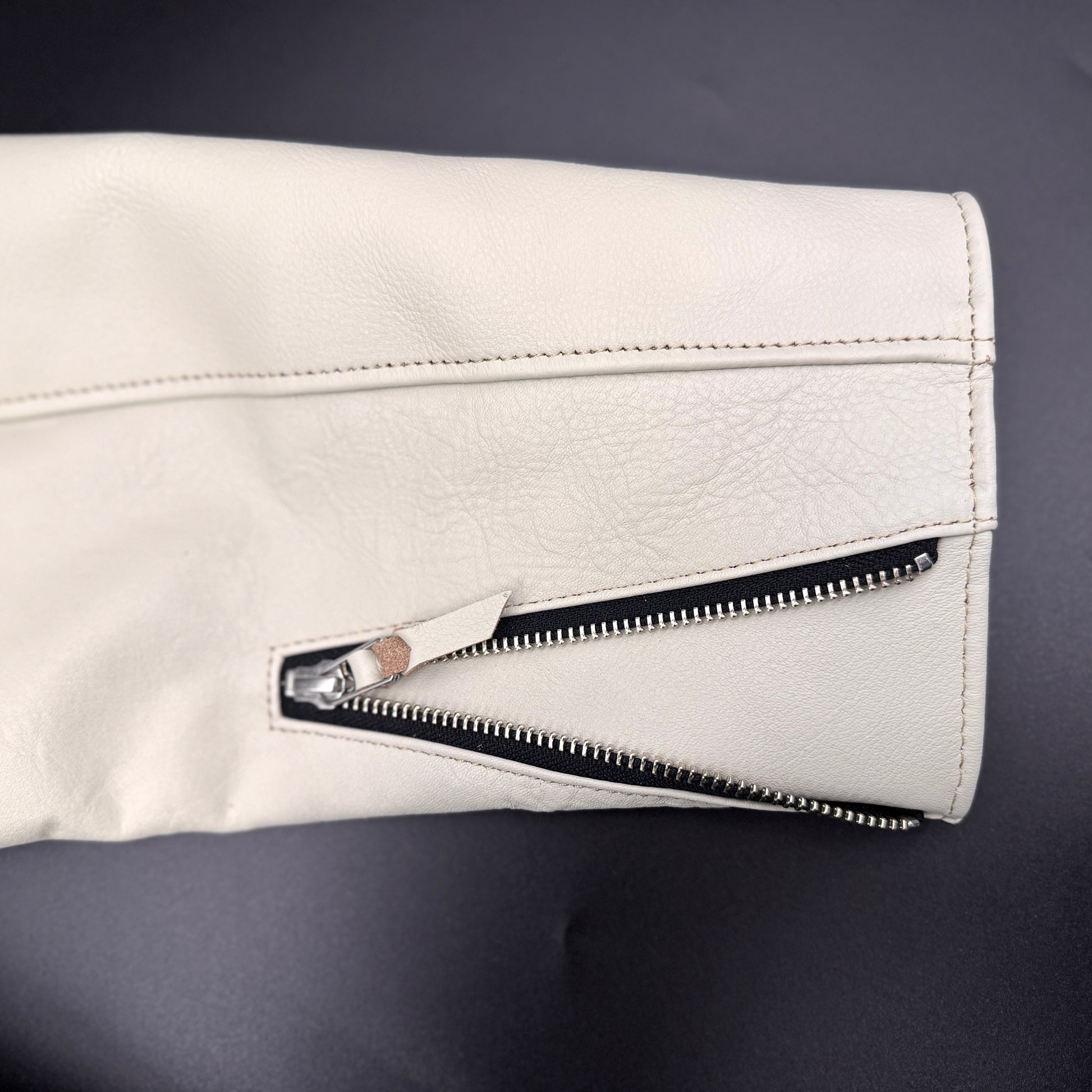 丘染めで仕上げたアイボリーに近いレザーカラーは、どんなコーディネートにもマッチする渋みの効いた「大人の白」。