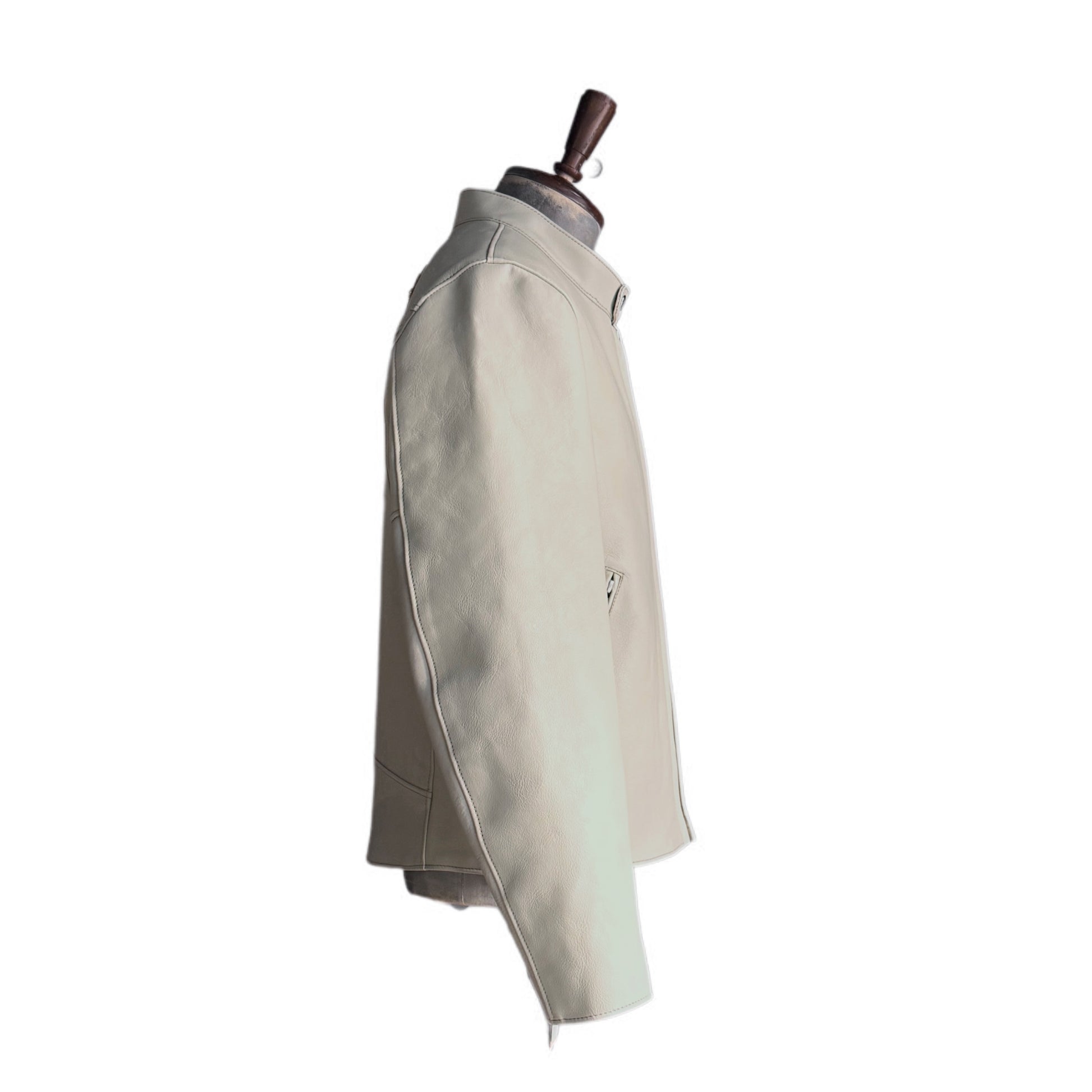 ダブルライダースと人気を二分するシングルライダースジャケットは、「カフェレーサージャケット」とも呼ばれ、レーシングジャケットを基にしたスポーティーでシンプルなデザインが特徴。