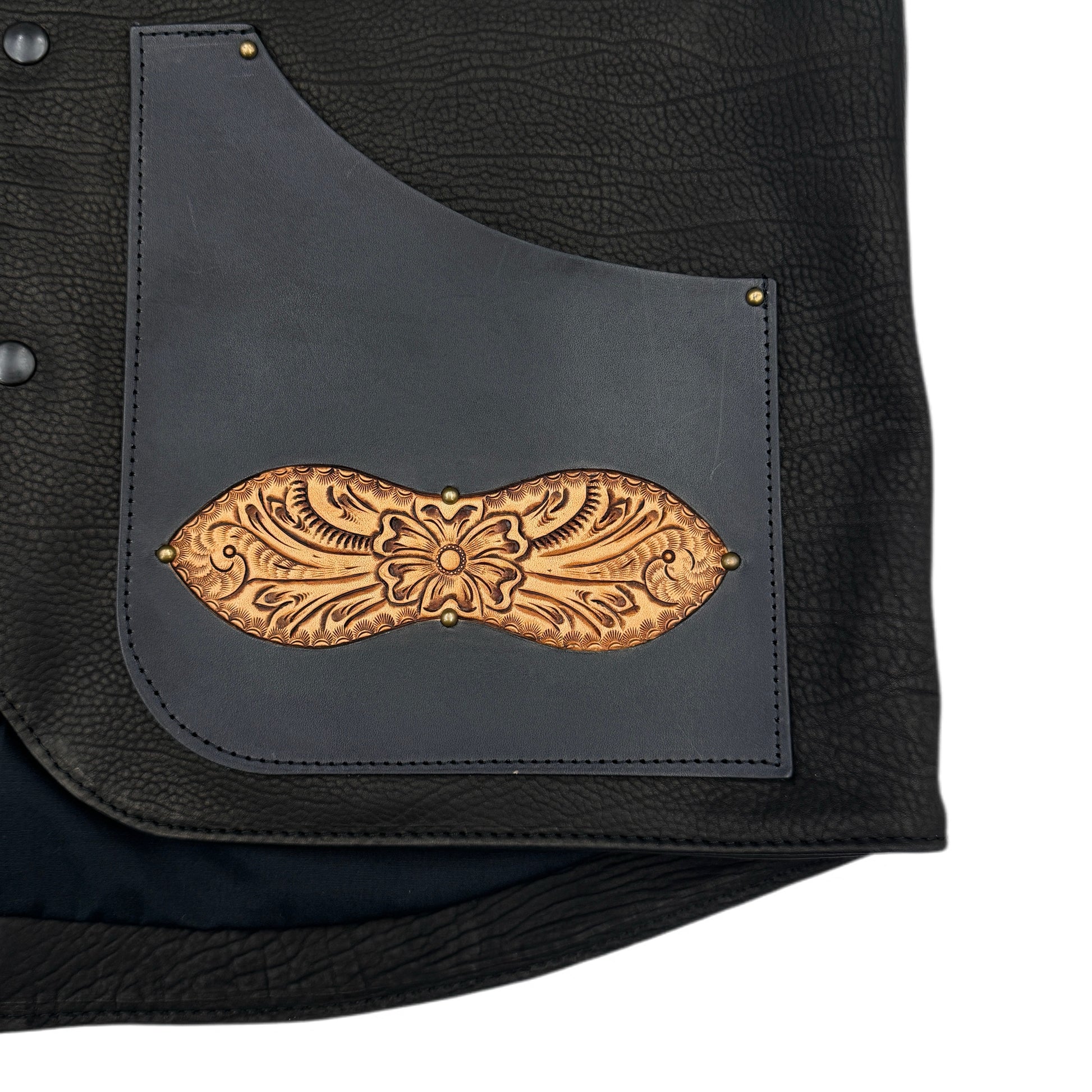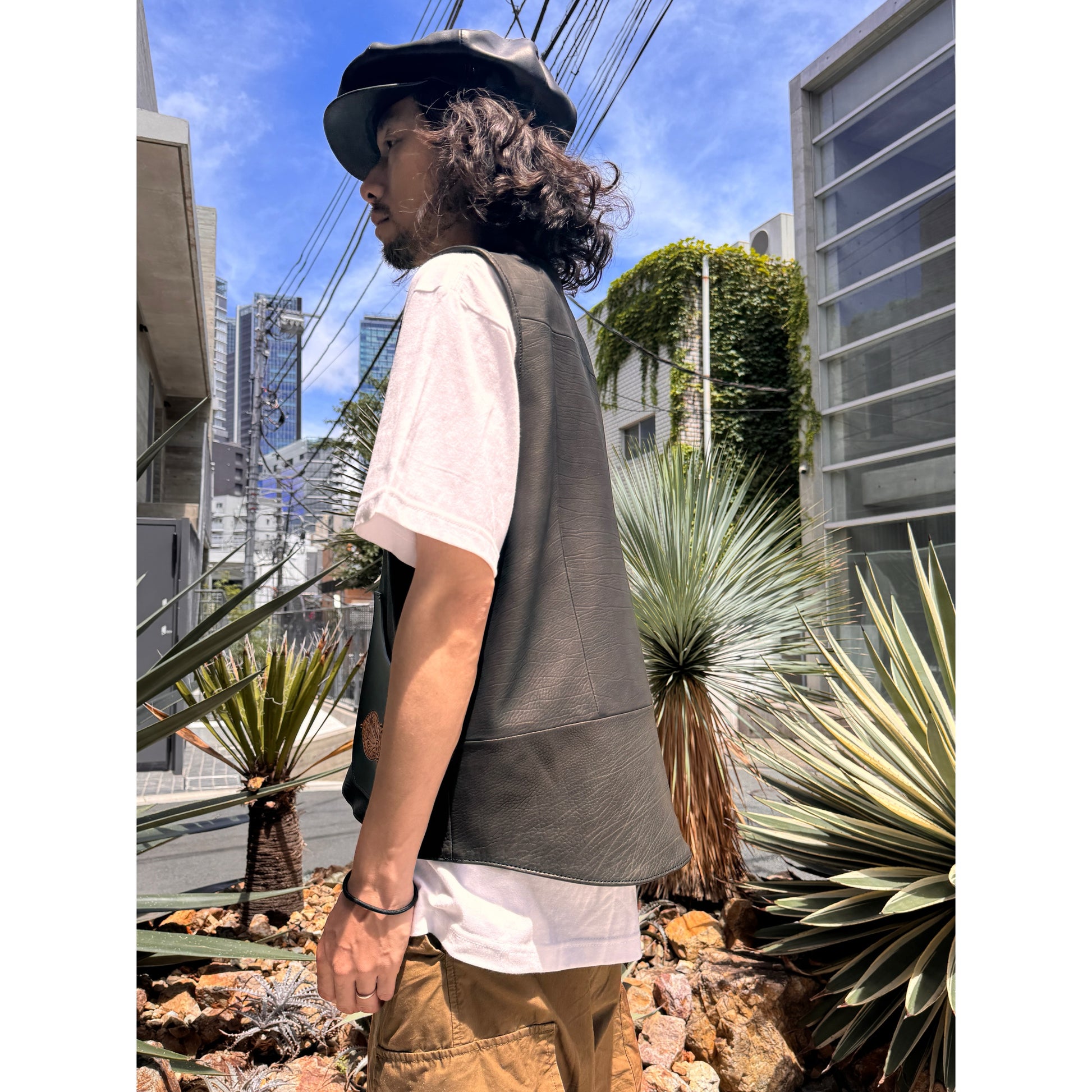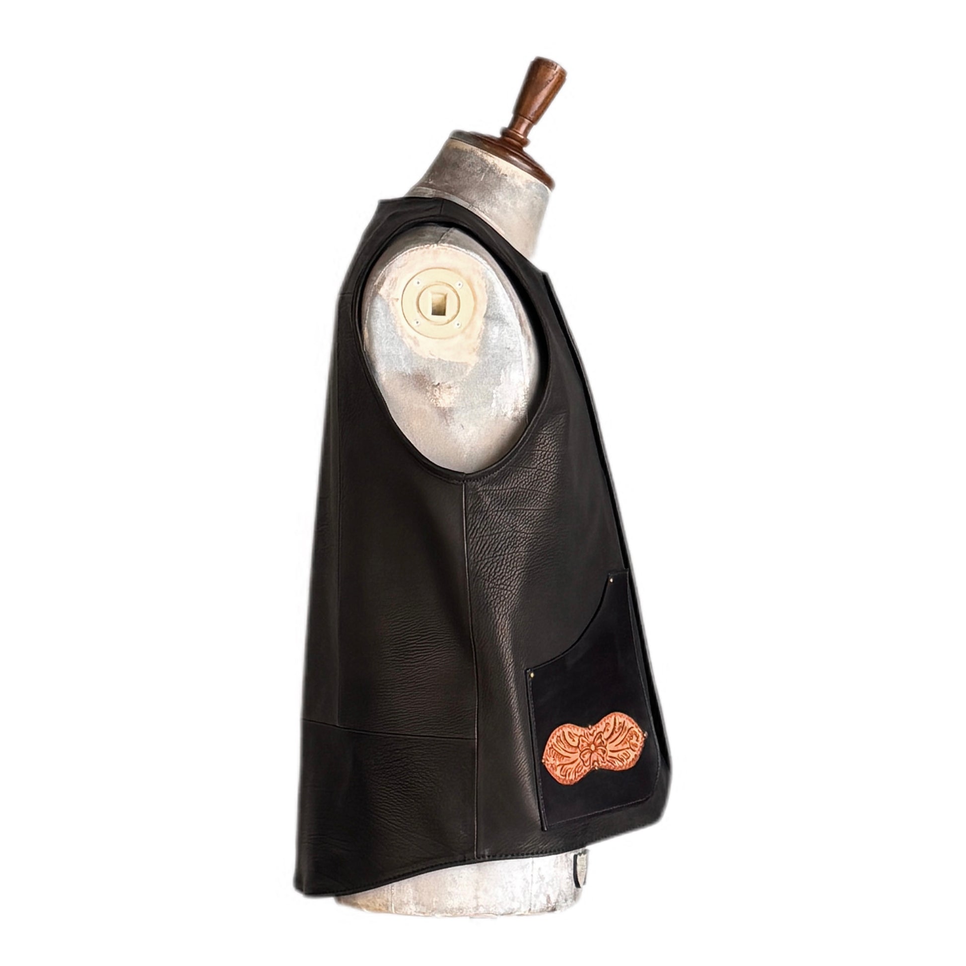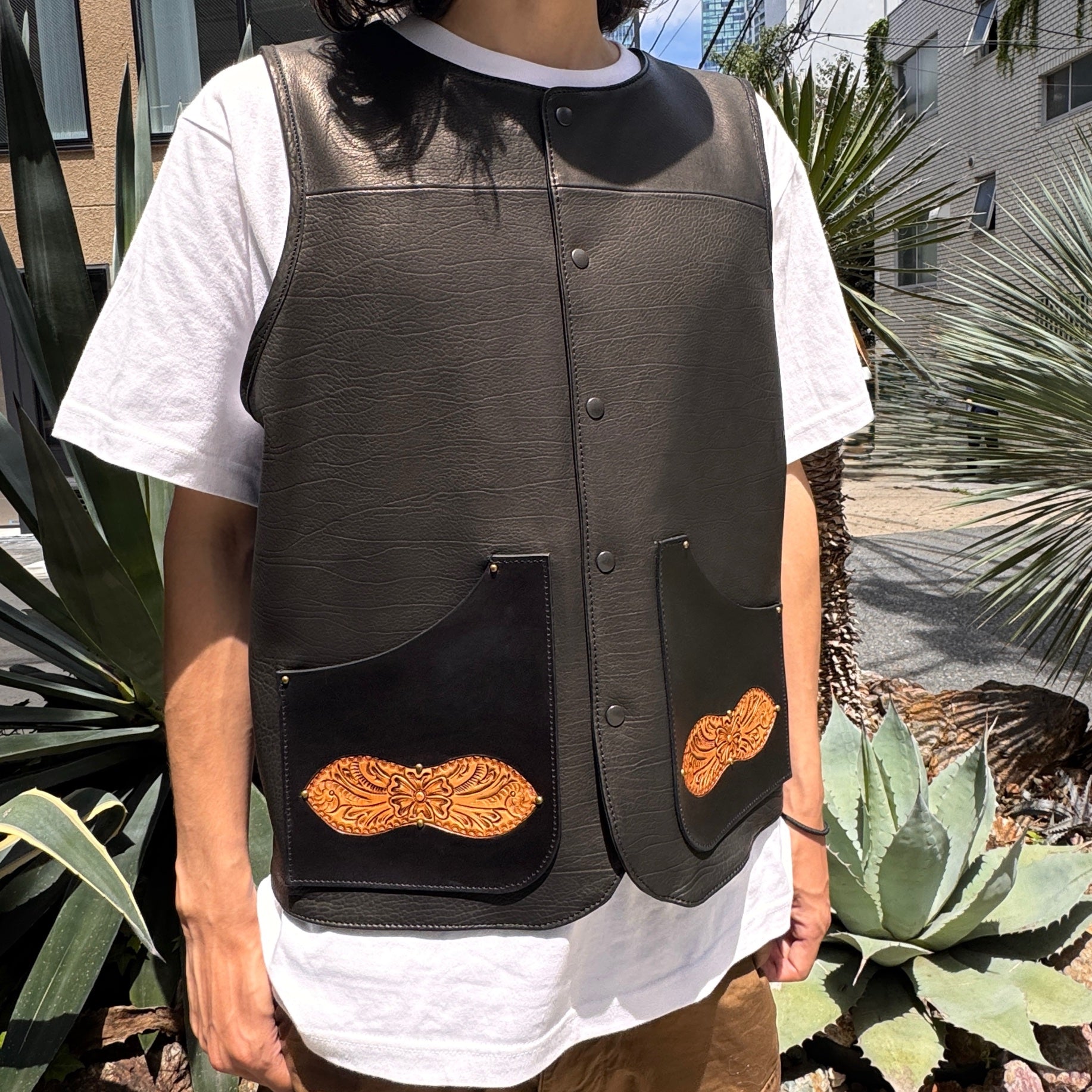 VEST "Peanut Flower" 【レザーベスト/ブラック/カーフレザー/バイカラー】